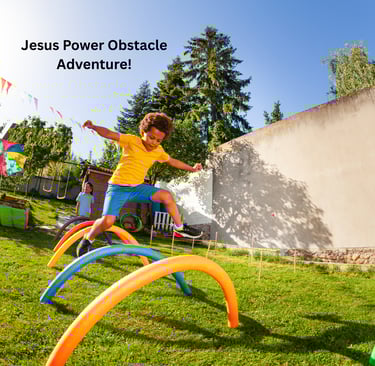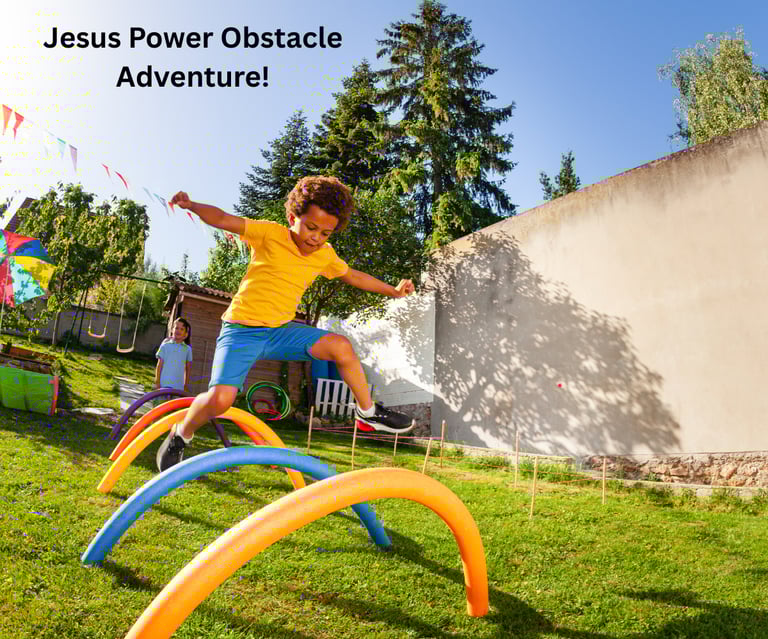 Play a joyful worship song like “My God is So Big” or “Jesus Loves Me” while they run the course. You could even do a second round where they shout “Jesus gives me strength!” at each station.